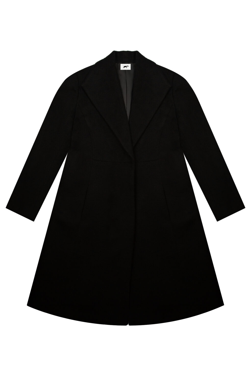 In deep noir, this overcoat is crafted with a feminine silhouette that combines strength and elegance. The wide lapels and double-breasted front create a structured, sophisticated look, while the fitted waist and flared cut enhance the figure with subtle refinement. Designed to balance comfort and presence, it transitions seamlessly from day to evening, making it an essential statement piece in any woman’s wardrobe. A timeless coat that embodies both modern confidence and classic style.